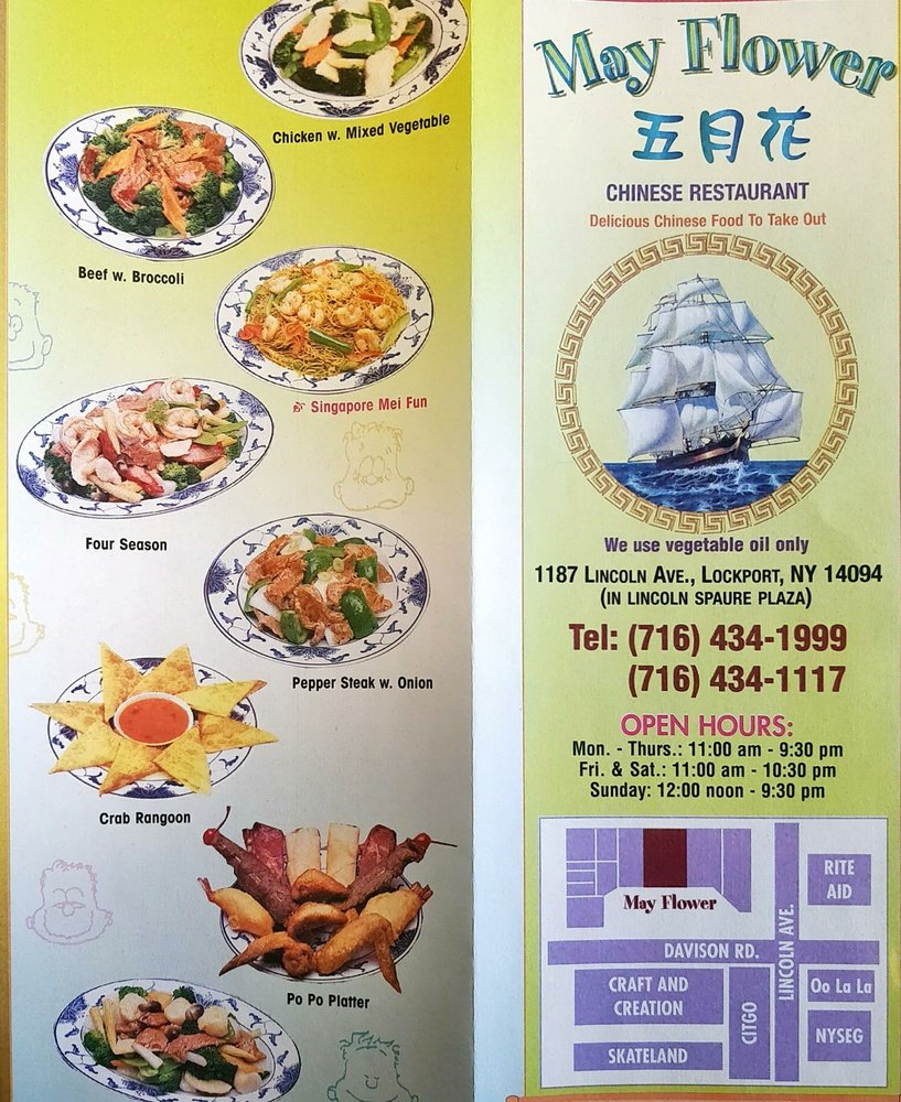 Introducing Mayflower, a Chinese restaurant located in Lockport, NY. This casual establishment offers a range of amenities, including takeout, delivery, and catering services. Known for its friendly service and delicious dishes, Mayflower has received positive reviews from customers. The Crispy Beef and rotating entrees like curry chicken and hot & spicy chicken are highly recommended. The inclusion of broccoli with meals is a plus, and the prices are fair. While some customers wish for delivery options for non-drivers, overall, Mayflower stands out as the best Chinese food option in Lockport. So if you're in the area and craving some flavorful Chinese cuisine, Mayflower is the place to go.